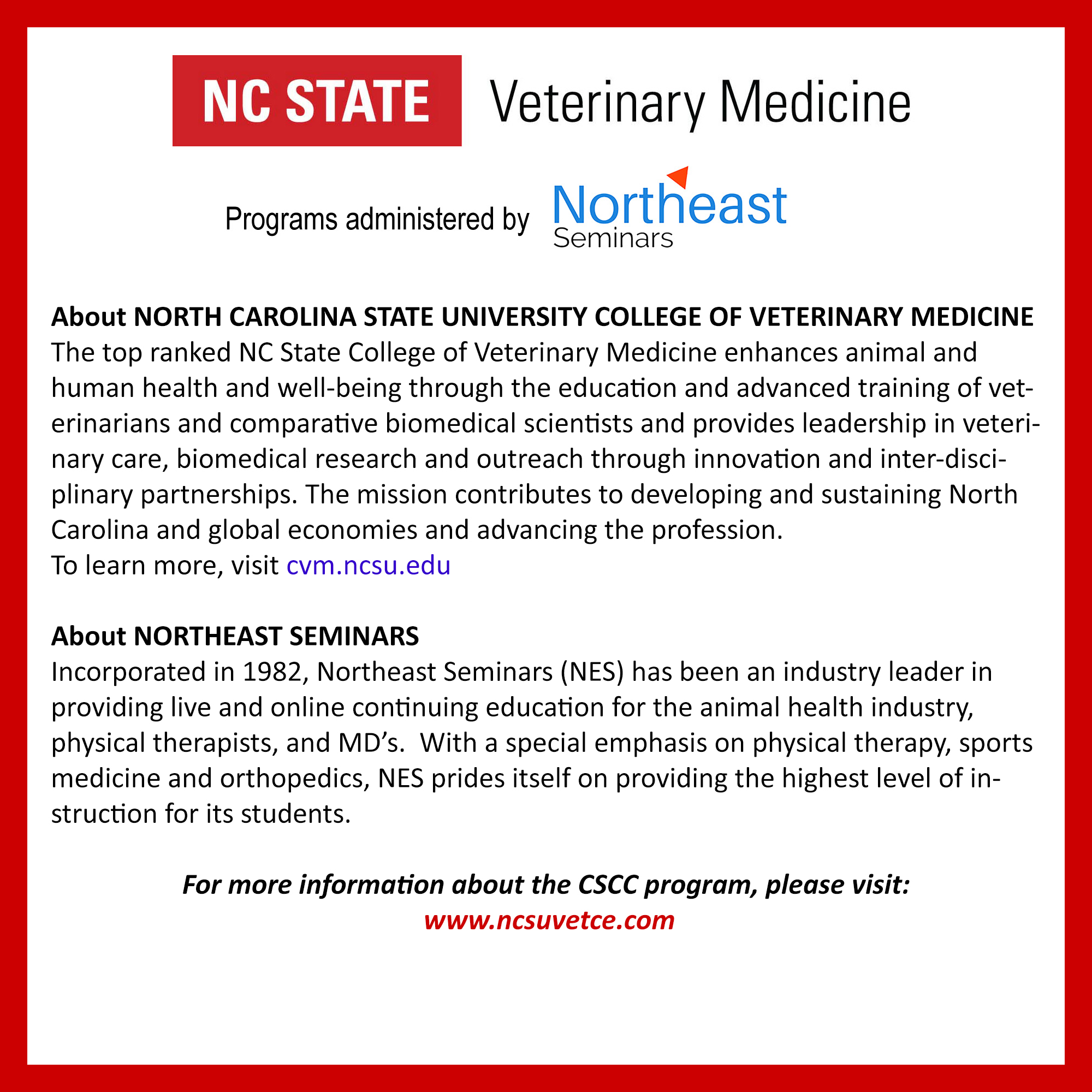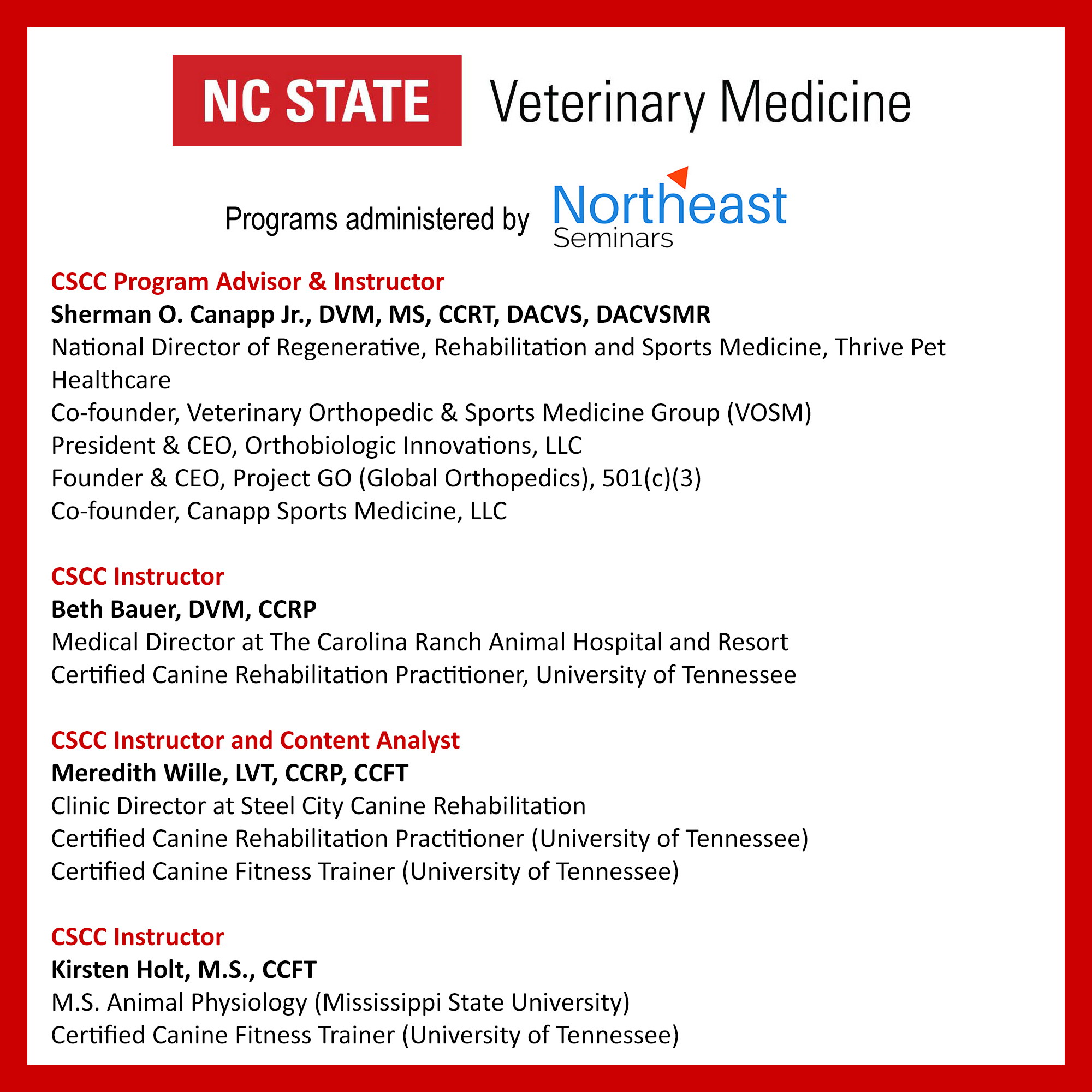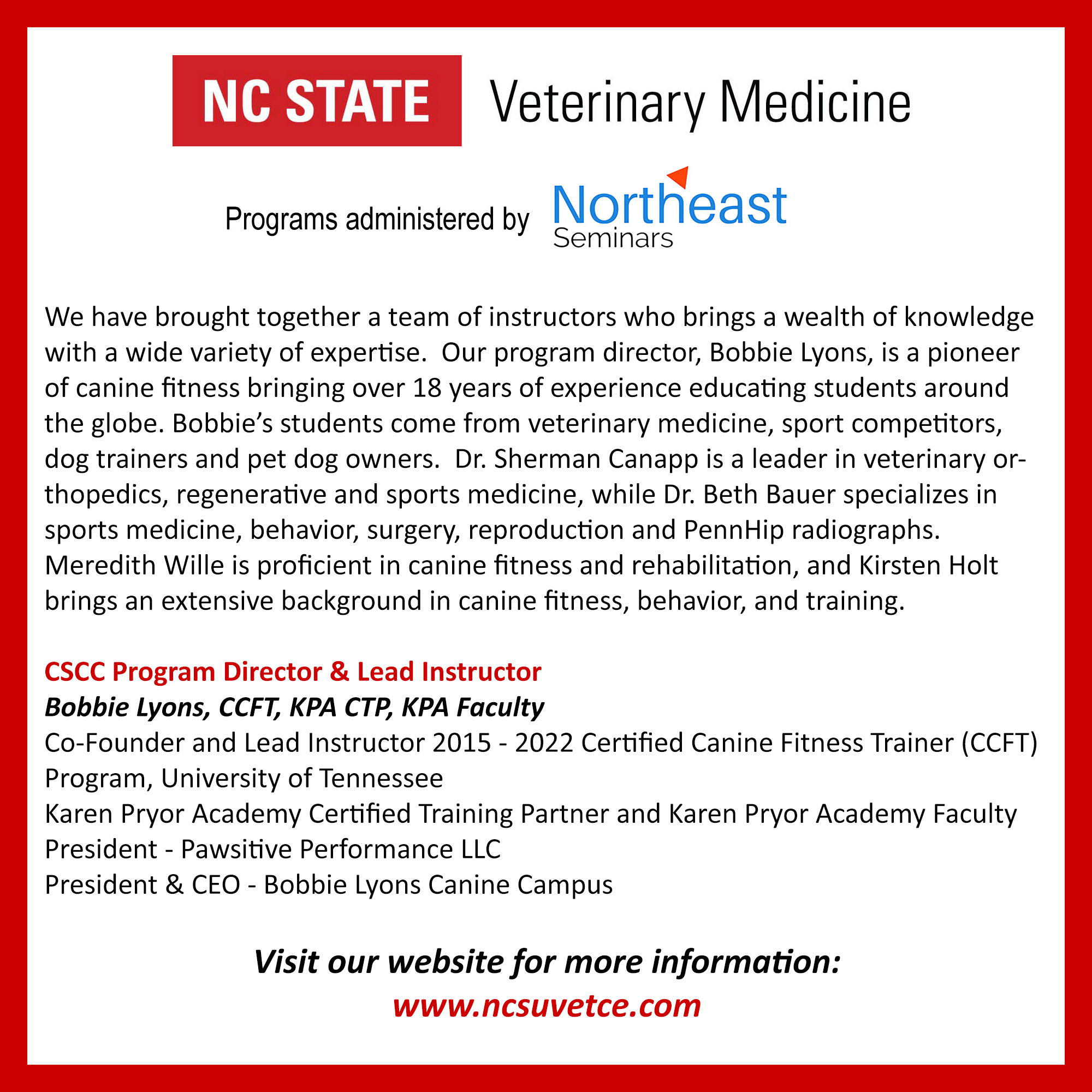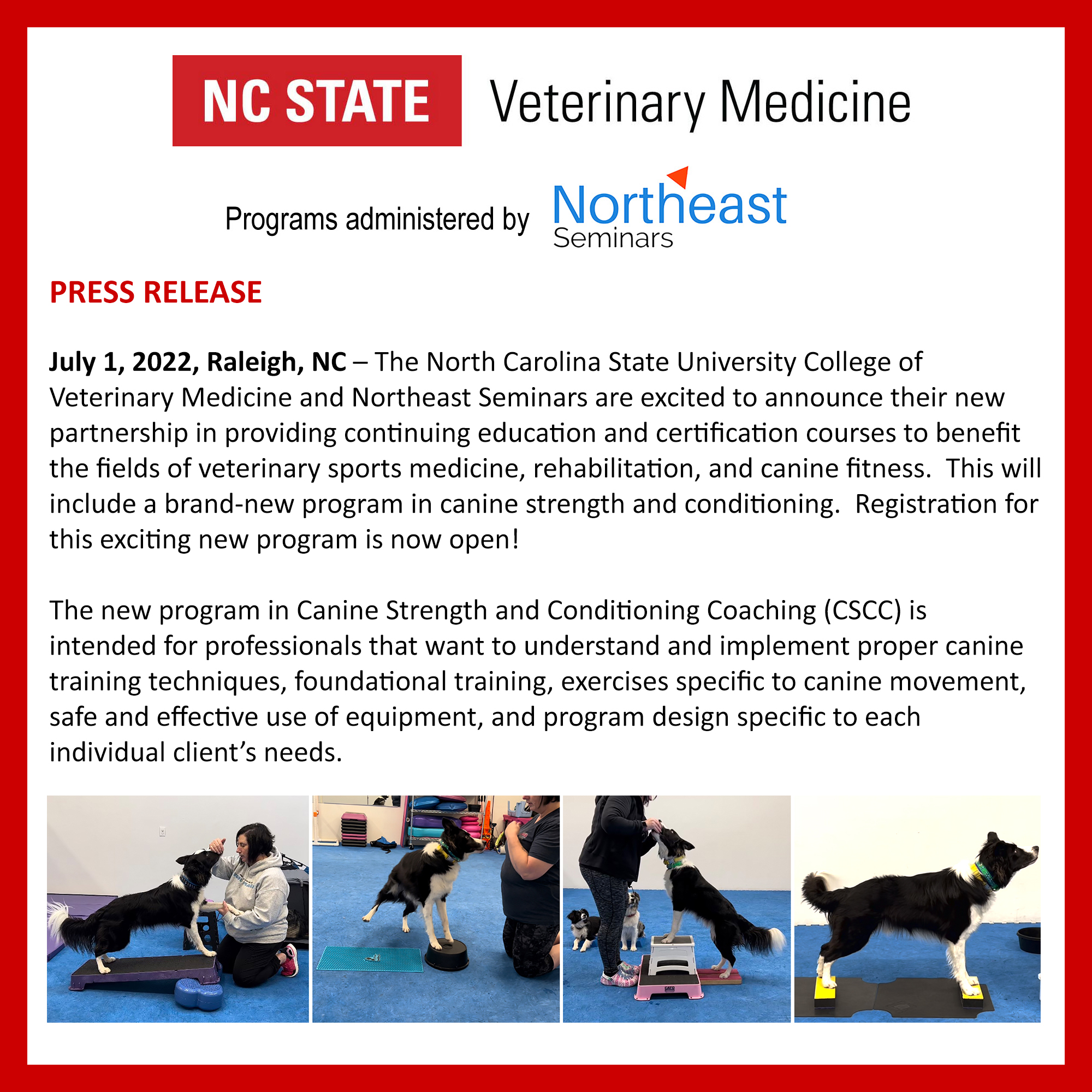 To find out more information about the CSCC program, click on the following link: https://www.ncsuvetce.com/canine-fitness-cscc/